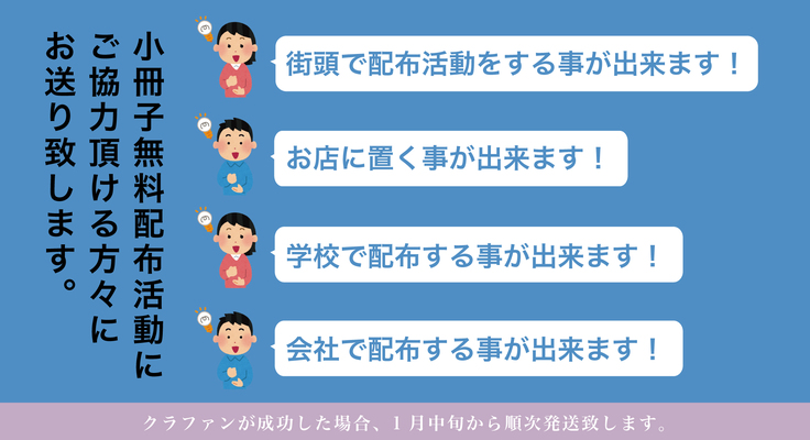 - 小冊子を周知拡散活動にご協力頂ける方には、各自お送り致します。