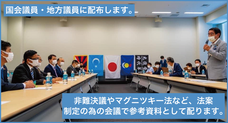 - 国会議員・地方議員・記者に小冊子を無料配布します。