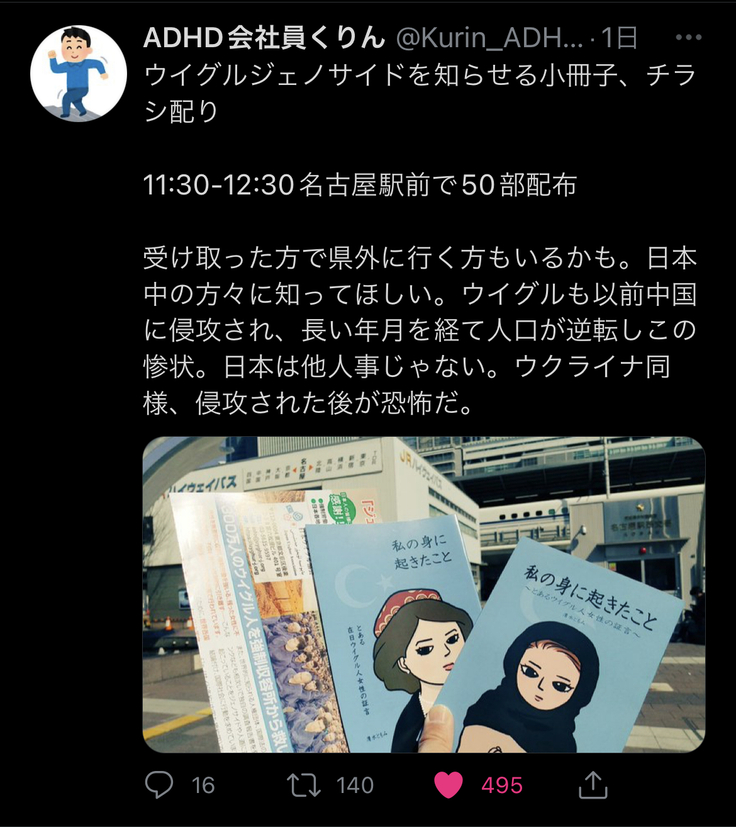 引き続き、ウイグルジェノサイドの周知拡散活動を頑張って参りますので、応援どうぞ宜しくお願い致します。