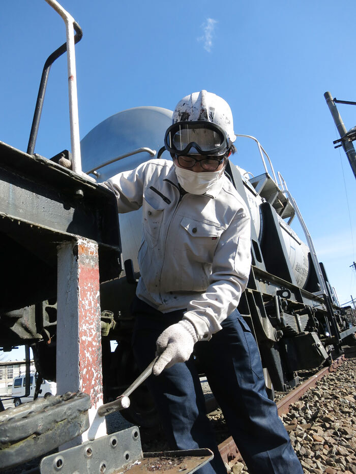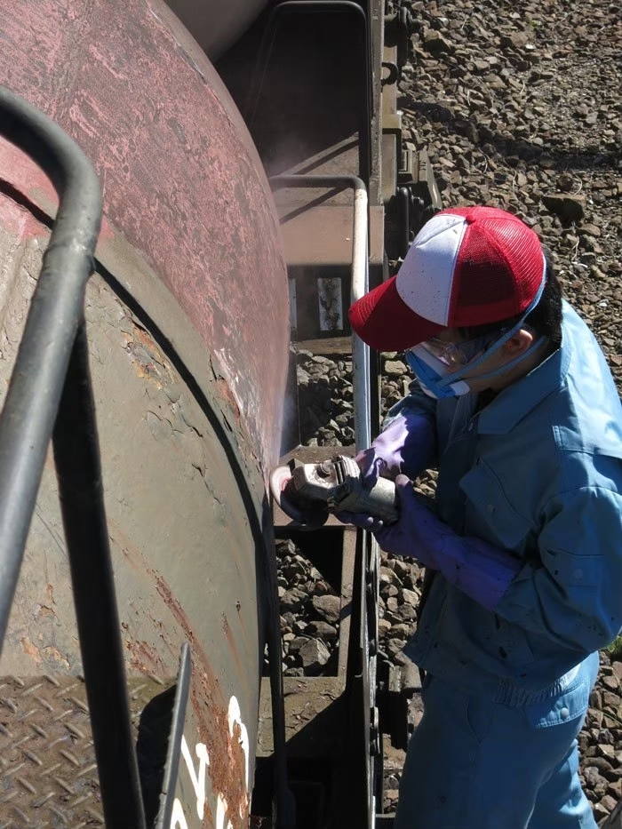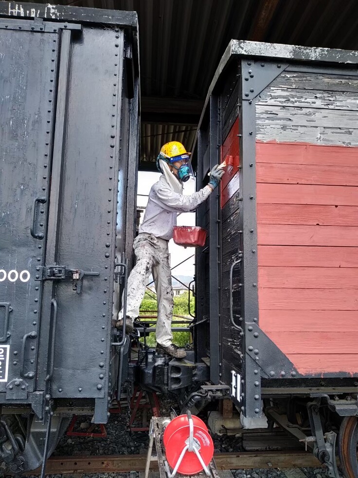 開館以来、収蔵車輌も増え、木材や鉄、アルミなど時代や用途により材質や構造も異なる様々な貨車を野外展示しているため修復、保全は欠かせません。