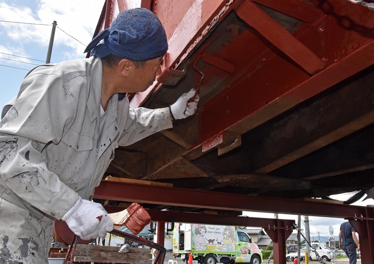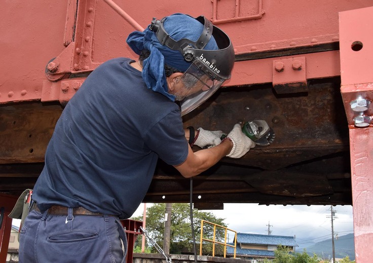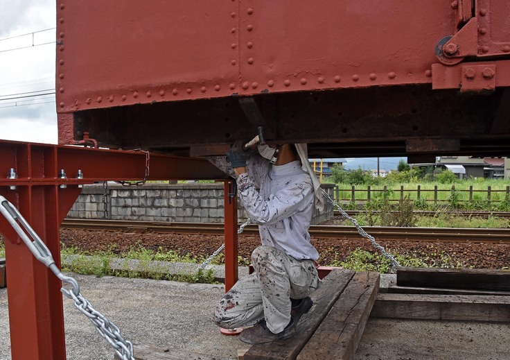 そして、スタッフの皆さんで関西鉄道貨車の床下梁のケレン・錆止め作業を進めました。