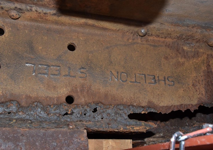 ケレンが完了したら、鉄骨のメーカー刻印が出てきました!