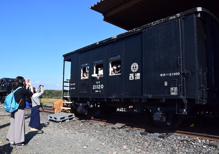 車掌車ワフ21120の車内を公開しています。見学ご希望の方は車内見学用乗車券を用意しておりますので受付にお申し出ください。車内ではクマちゃん車掌と記念撮影もできます。