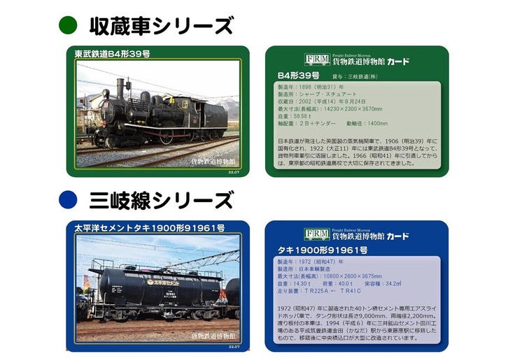 三岐線でご来館の方に「貨物鉄道博物館カード」を配布しております。普通乗車券でお越しの方は丹生川駅で引換証をお受け取りください。今月の図案は以下です。