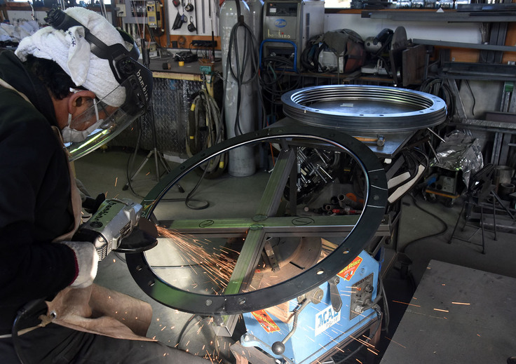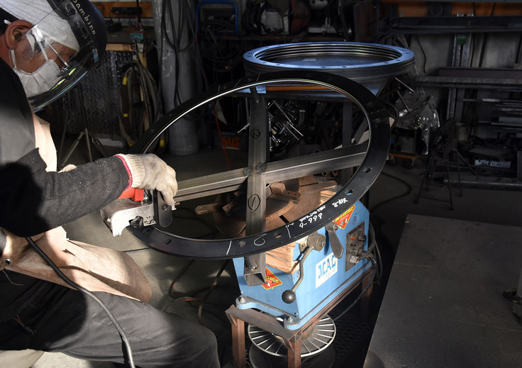 三重県菰野町の溶接屋bambinoさんへ作業をお願いしているのですが、今日は作業場へお邪魔して、スポーク車輪保護環の面取り作業に立ち会いました!