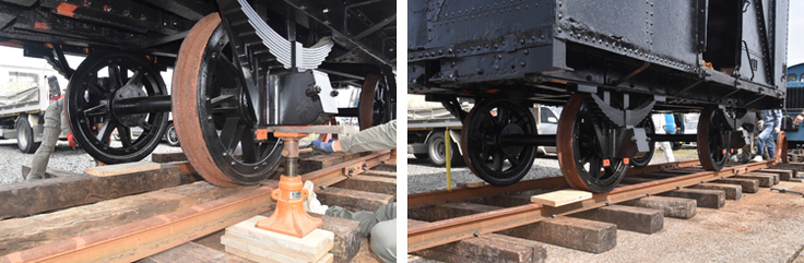 ついに線路上に降り立ちました。クラファンから2年の歳月を経て鉄道車両として甦りました。