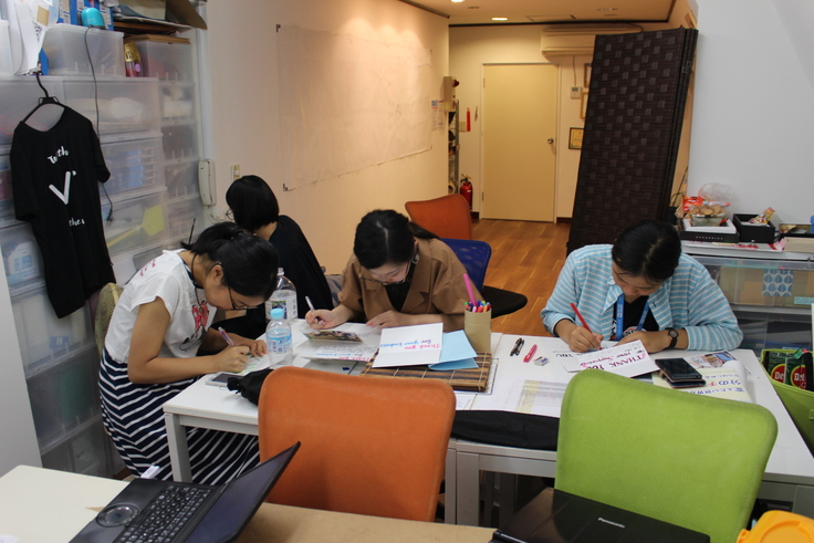 サンクスカード完成後、ユースメンバーが支援者様の宛先を手書きで