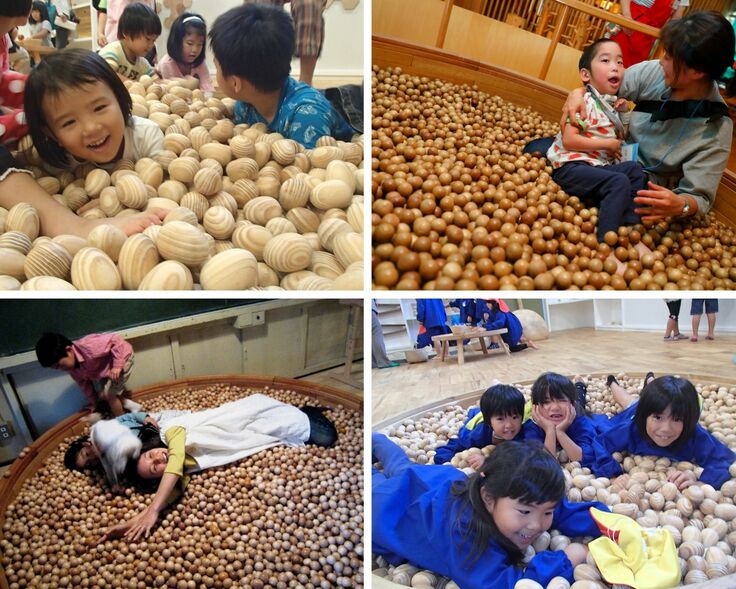 みなさまからいただくご支援をもとに、館内の目玉となる木製遊具「木のタマゴプール」を制作します。支援者の方のお名前が入った木の玉子は「みんなでつくる!福岡おもちゃ美術館」の象徴としてもふさわしく、たくさんの入館者に喜んでいただけることを確信しています。