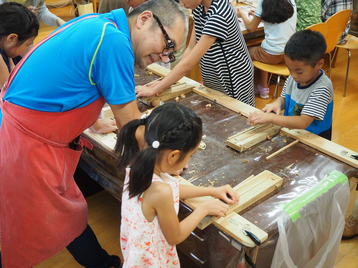 森林大国・日本の豊かな森の「材」と職人の「技」。無垢材ならではの柔らかな手触りや香りは、五感を刺激し感性に響きます。館内では、赤ちゃんが木のおもちゃを気にいって離さない姿もよく見かけます。また、様々な道具や材料を活用したおもちゃづくりは大人気!創意工夫の楽しさ・自らの手を使うことへの興味をひきだします。