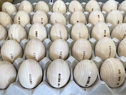 実はこのタマゴひとつひとつにお名前の刻印をしてくださったのは 長門おもちゃ美術館のみなさんです。![]()