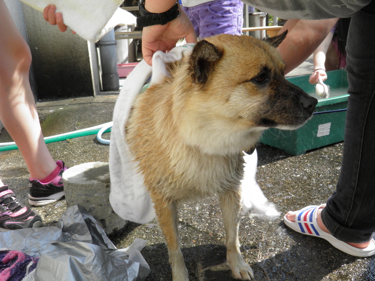毛が生え変わる頃や暑い夏に体を洗うこともありますが、そのたびに体を振ってめちゃくちゃ水を飛ばすので、こどもも職員もホントに一苦労です。