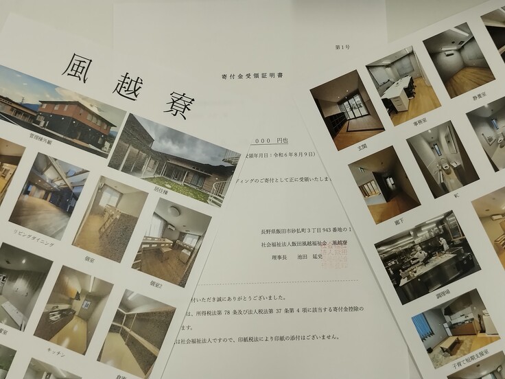 ※1. 寄付金領収証明書は2024年11月末までに送付します。 寄付金領収証明書の日付はREADYFORから風越寮に入金がある2024年8月の日付となりますので、2024年分として確定申告をお願いいたします。