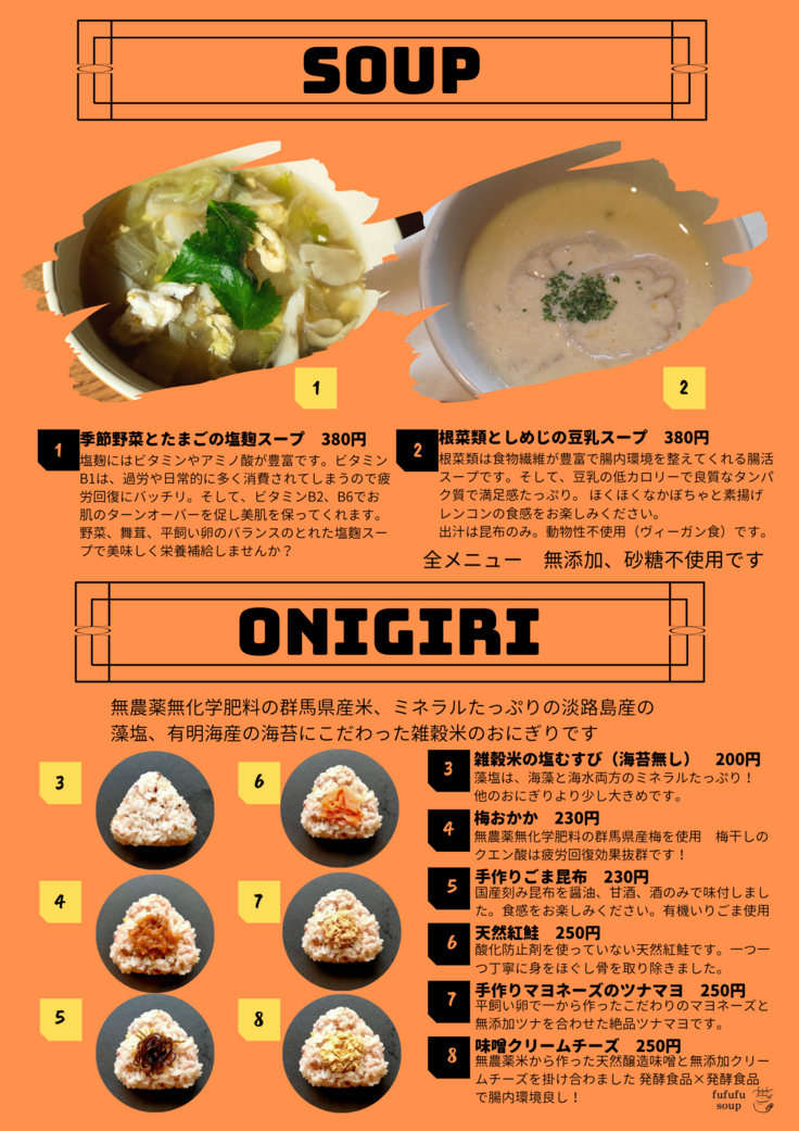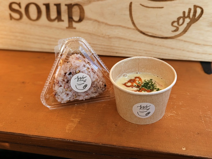 そんなパパママのために、野菜がたっぷり入ったスープとおにぎりで、手早くそして温かく美味しい料理が提供したいと思い、現在キッチンカーを借りて始めました。