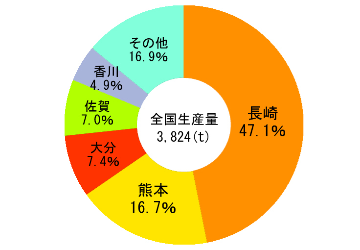 フグ養殖の生産量の日本一は長崎県で、全国シェアは47.1%です(2019年)。
