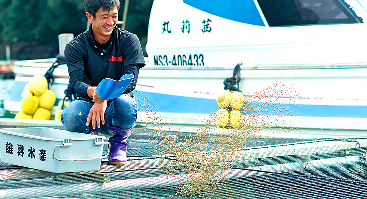 代表の西元は橘漁協組合のなかで最年少の経営者。ヤンチャだった自分を一人前にしてくれた先代が急逝し、事業を引き継いだばかりです。「自分たちの世代が頑張らないと地元の養殖業は衰退してしまう」と危機感を募らせています。