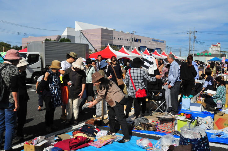 市民文化会館キラリ☆ふじみの駐車場に広がる40ブースにも及ぶフリーマーケットコーナー。