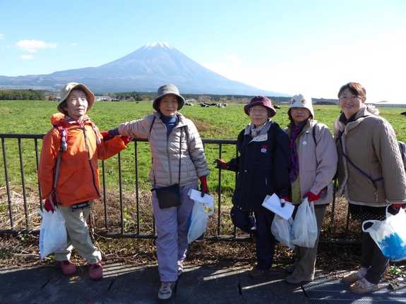 朝霧高原・富士丘地区。ここは酪農地帯。戦後、長野県伊那谷からの入植者が開拓したところです。そんな話を聞きながら、ごみも拾いながら歩きます。