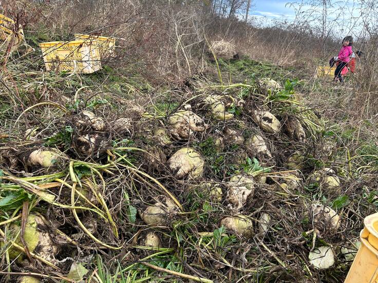 さて、先日20日(日)には黒姫の清水農場にて収穫作業を行いました。収量や甜菜の大きさも上々です。子供たちも手伝ってくれて大活躍でした。一部の農地では甜菜収穫期のギリギリまで粘り、糖度を目一杯上げていく予定です。