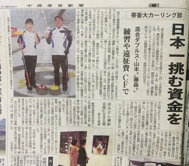 記事にもありますように、私たちのスキルアップ、日本一を目指すだけでなく、少しでも多くの方がこのプロジェクトによってカーリングに興味を持っていただけたらなと思っております。