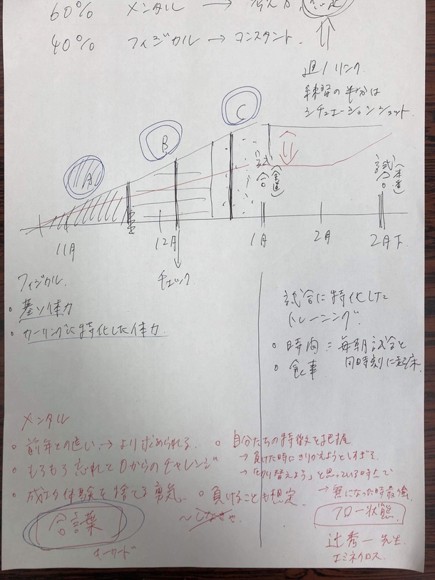 今季は、例えどこかで負けたとしても、どんな状況になっても、屈することなく自分たちのパフォーマンスができるようメンタルトレーニングをMコーチ監修のもと、行なっていきたいと思っています。