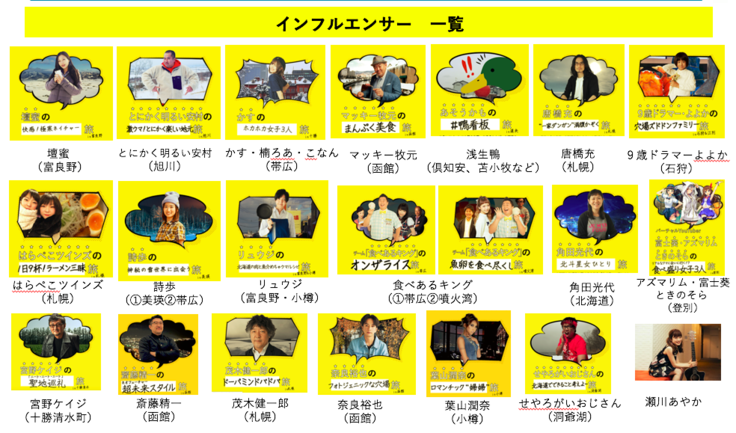 著名人がインフルエンサーとなり、北海道各地へ行き、北海道の魅力をツイートしながらの