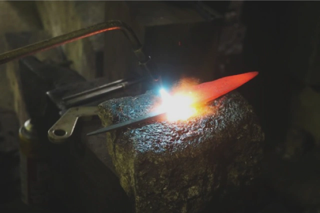 【SHINBU】では1000℃以上もの炉と自由鍛造で1本1本丹念に鍛え上げ、切れ味鋭い包丁に仕立てています。
