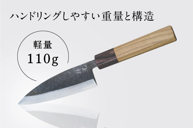 また一般的な和包丁は鍛造、研磨、焼入れ、柄作りを専門の業者が分業していますが、野鍛冶が源流の“ふくべ鍛冶”では全て自社工房で行っており、各工程の職人が責任を持って仕上げています。