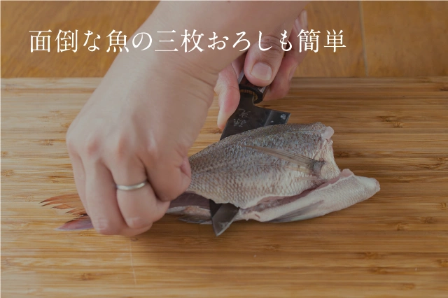 魚や肉はもとより野菜も楽にカットでき、料理を美味しく仕上げます。