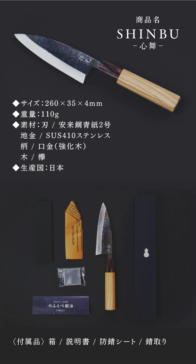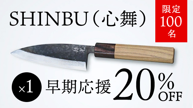 職人が目指したもの、それは心が舞い上がるような包丁作り【SHINBU (心舞)】はイカ日本三大漁港・能登の野鍛冶が鍛え上げたタフで抜群の切れ味を誇る万能出刃包丁です。