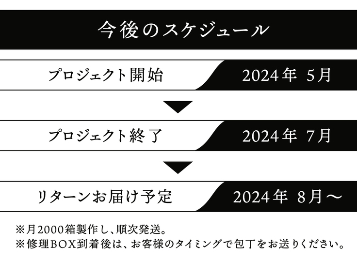 ※本文中に記載させていただいたスケジュールは、あくまでプロジェクト公開時点の予定です。ご支援の性質上、配送遅延のおそれがございます。