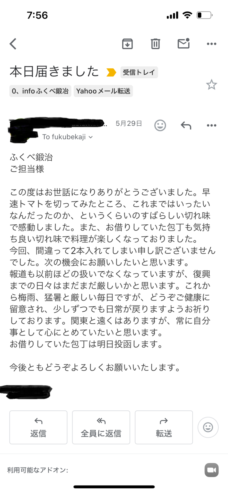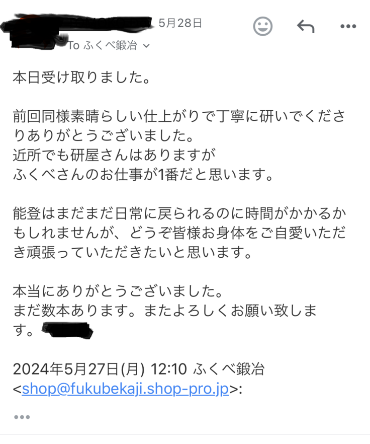 最近切れ味がいい感想が多く届いています。ありがとうございます!