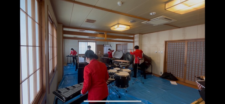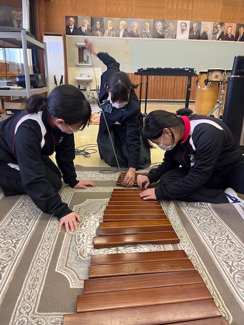 大会で使用する楽器は自分たちで『準備、大きい楽器は一度分解して運び組立』を繰り返す