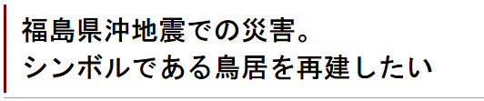 ■目標金額の使途:崩壊した鳥居の再建費