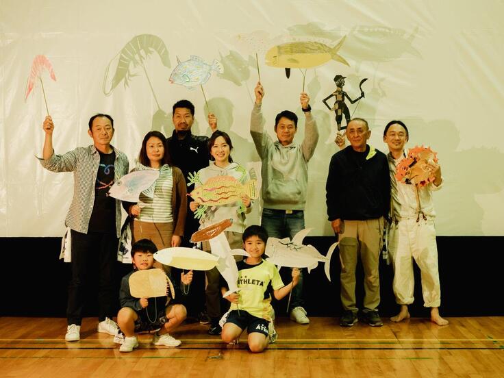 本番上演に先駆け、4月19日から川村さんが来島、今回音楽で参加いただいた石田多朗さん、オオルタイチさんらがその後来島して、地域のフィールドワークをしながら影絵と音楽を仕上げていきました。簡単にですが、写真と共にご紹介させていただきます。