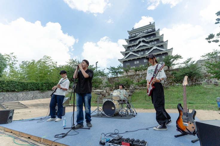 福山軽音学部の様々なメンバーでバンド演奏を行います。曲数は5、6曲ほどで、福山市の地域活性化に向けて、そして、福山フェスを盛り上げるライブを行った