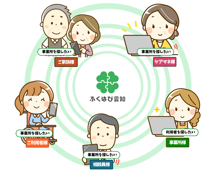 「ふくはぴ愛知」はヘルパーを求める利用者様と利用者様を求める事業所のマッチングサービスです。