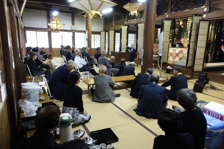 福順寺では、春、秋、冬と営む法要の折には、ご門徒(檀家)の皆さまや近隣の皆さまにご参詣いただき、仏教的観点から布教師の先生よりご法話いただく聞法会も設けております。