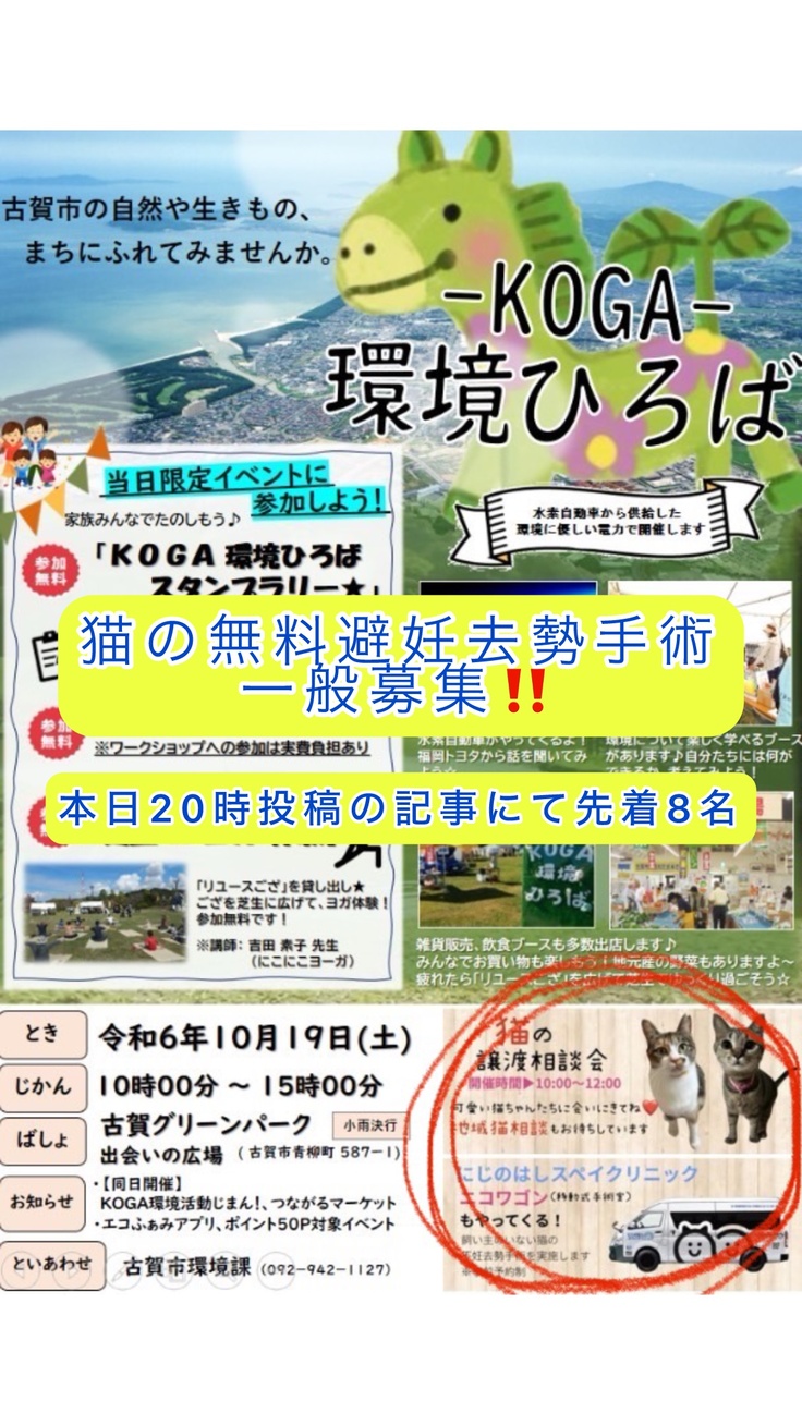 10/19の環境ひろばにてニコワゴン出張手術を行います。今回8頭をクラウドファンディング支援者様、一般の方向けに募集いたします。