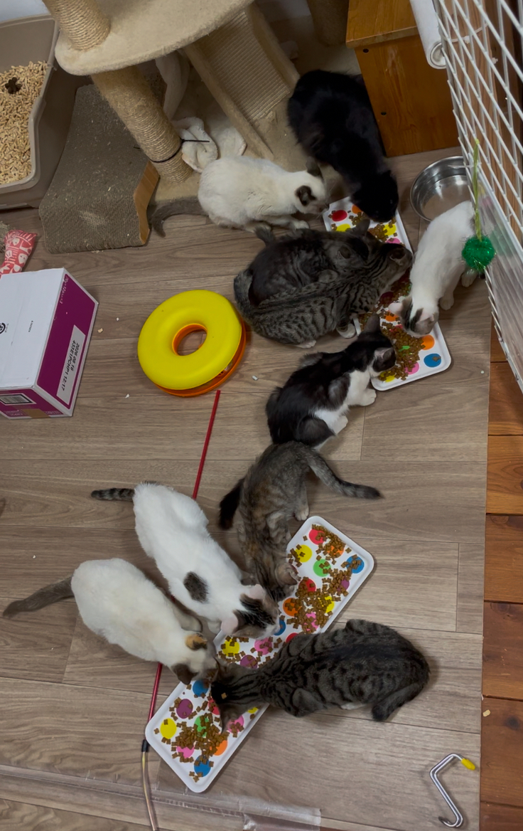 あまりの数の多さに、当初どうなる事かと心配しましたが、猫たちはよく慣れていて、エイズ白血病もなく運が良かったです。