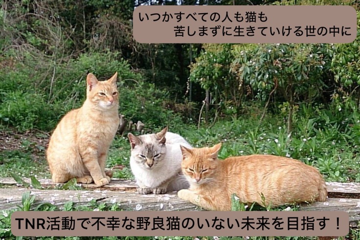 私たちはすべての飼い主のいない猫に不妊去勢手術が施され、不幸な猫のいない未来を目指していきます!