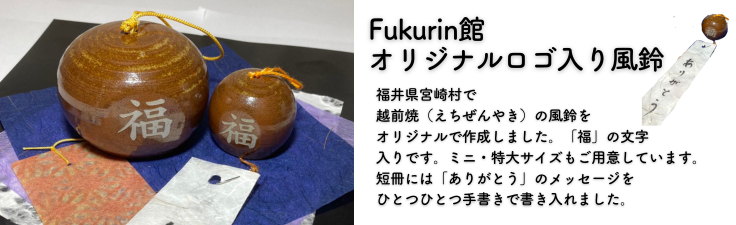 福井県越前町の宮崎地区の工房でひとつひとつ制作していただいた、越前焼(えちぜんやき)のオリジナル風鈴です。味わい深い音をお楽しみください。「福」の文字入り!