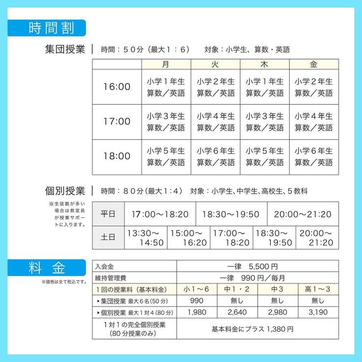 ■1授業50分990円〜 一般的なフランチャイズ塾に比べ2〜3割安価