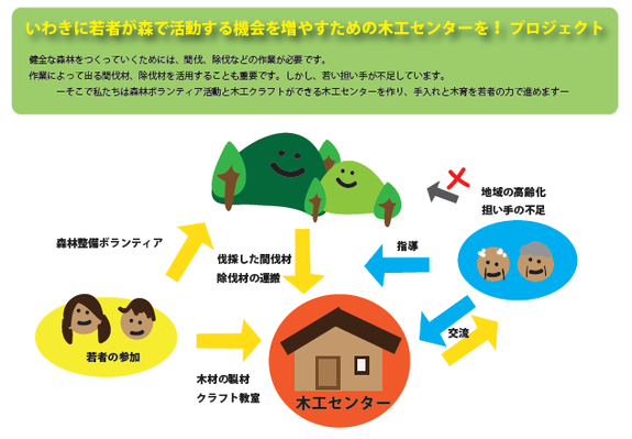 この度「いわきに若者が森で活動する機会を増やすための木工センターを!」という