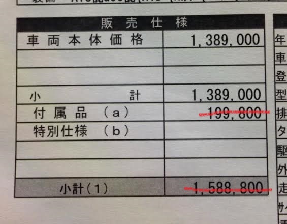 (赤線の付属品¥199,800は自動車保証ですが、これははずすことにしました)