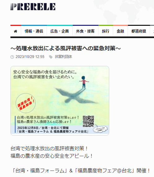 ◆「福島前進!台湾・福島フォーラム」の「公式プログラム」(当日配布部数100部限定)にご芳名を掲載