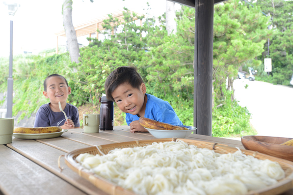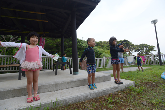 初日にしっかりと海で練習しました。初めて海でシュノーケルをつけて泳いだ4歳のT君は海でマスク越しに魚を見たあと、一日中「海でね、魚みたよ」って言っていました。