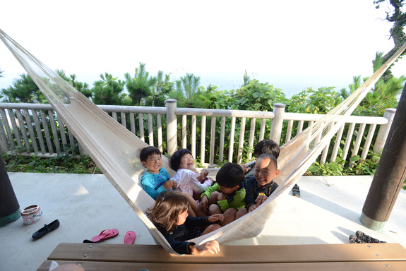 毎朝のラジオ体操、シンプルで体にいい料理、お母さんたちにはひまし油をつかったアーユルヴェーダトリートメント、島の人との交流、みんなで釣ったアジっ子。みんなで掲げたイルカの旗。たくさん笑って、泣いて過ごした島での時間。全てが宝物でした。
