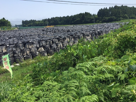 途中の道には、放射能除染後にいき場を無くした放射能汚染物の入った怪しい黒いビニール袋の山があちこちに散らばる。