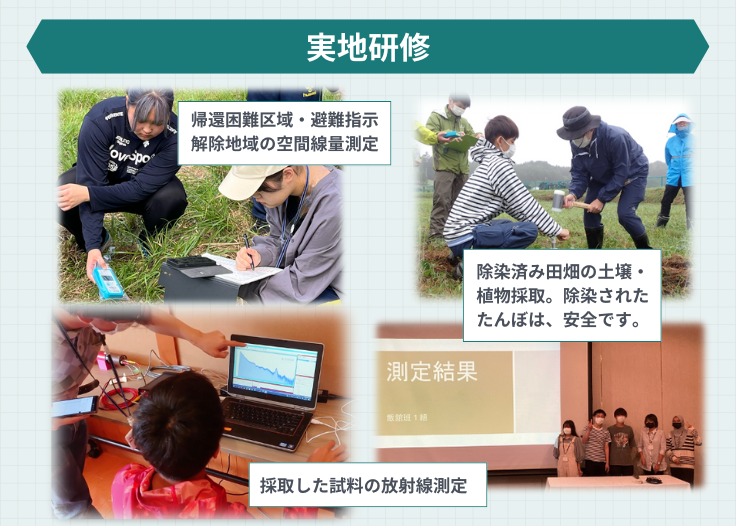過去に行われた5泊6日の実地研修では、学生が個人線量計を携帯し、常に線量を測定することができるようにしました。それにより、通常の場所にも放射線があることを実感し、放射線量の感覚を身につけることを目指しました。