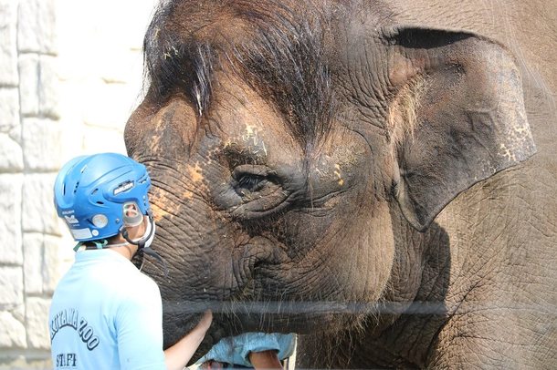 孤児ゾウのふくちゃんと心を通わせるため、飼育員は寝室や運動場の同じ場所に入り、直接触れ合いながら世話をする「直接飼育」を続けてきました。